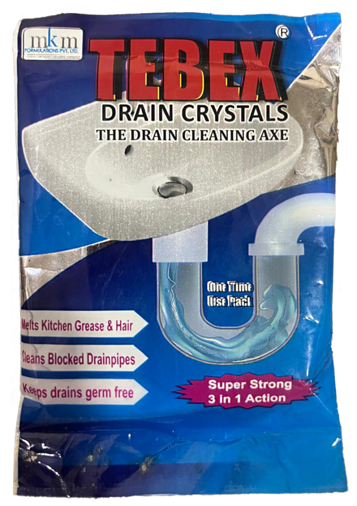 It’s a crystal / powder form drain opener / cleaner sold under the brand Tebex. The “crystal” version means it’s not a liquid, but solid granules or crystals that you pour into drains.The purpose is to dissolve or clear blockages in pipes / drains.